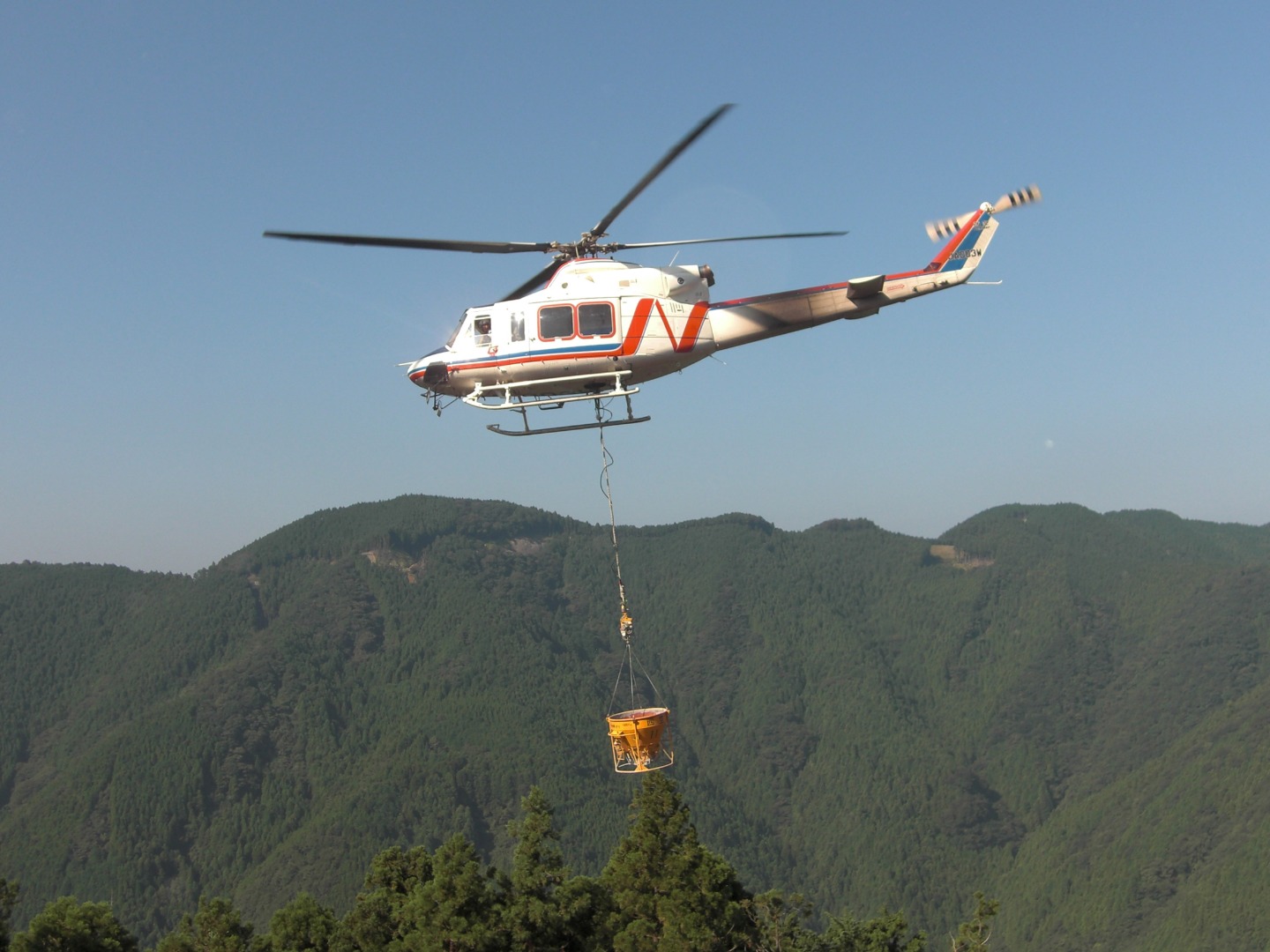 ヘリコプターによる資材輸送は、送電線鉄塔建設、無線局建設、遊歩道建設などの現場で、山岳地帯を中心に地上から輸送困難な場所へスピーディーに物資を輸送します。